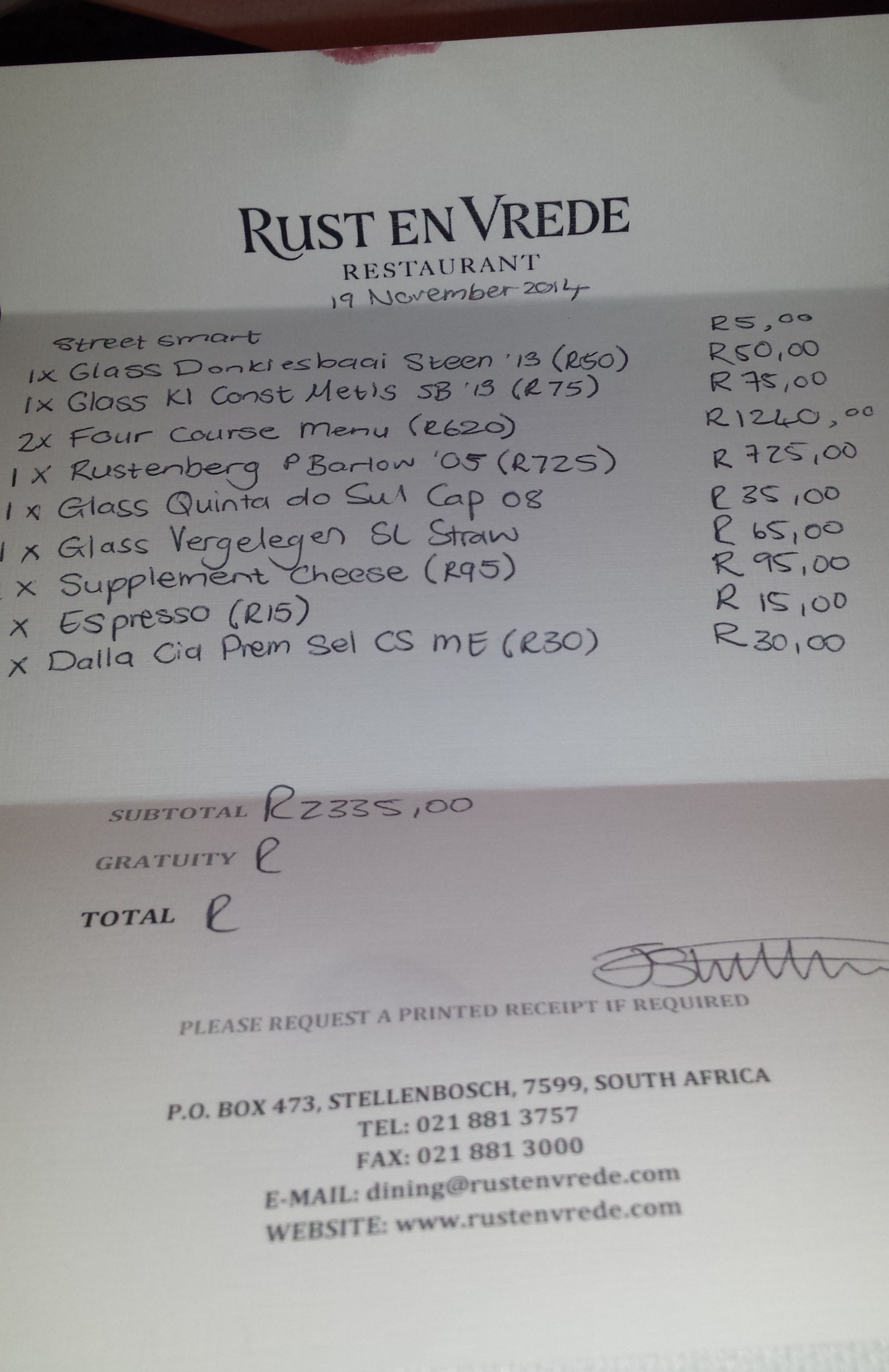 Handwritten invoice of Rust en Vrede